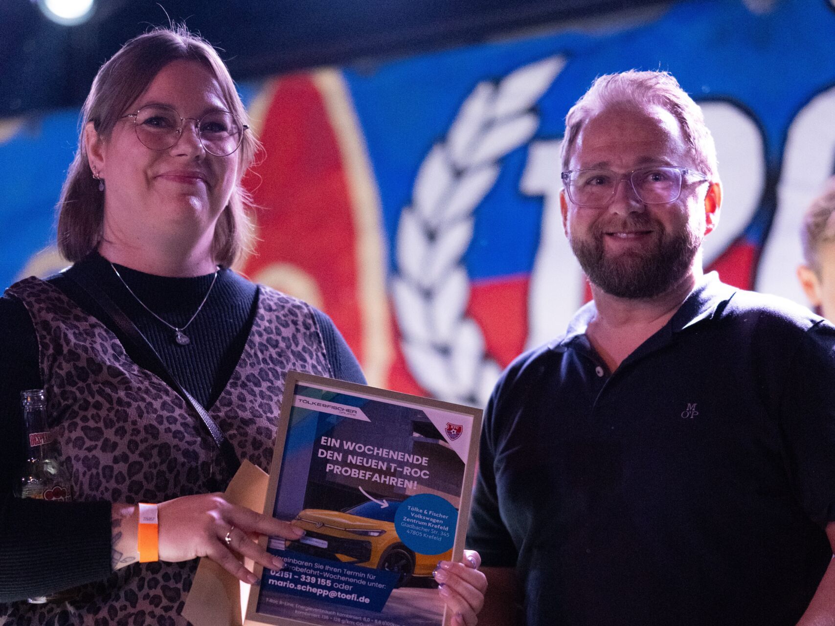 Es war ein rauschendes Fest in der Kulturfabrik: Die 120-Jahre-KFC-Party am vergangenen Samstag brachte Fans, Unterstützer, Mannschaft und Ultras zusammen. Nach einem kurzen Rahmenprogramm mit Quiz (unten stehen Fragen und Antworten zum Nachspielen), Talks und Verlosung gab es vor der Kufa noch eine kleine Geburtstags-Überraschung der Fanszene – und dann wurde zünftig gefeiert.